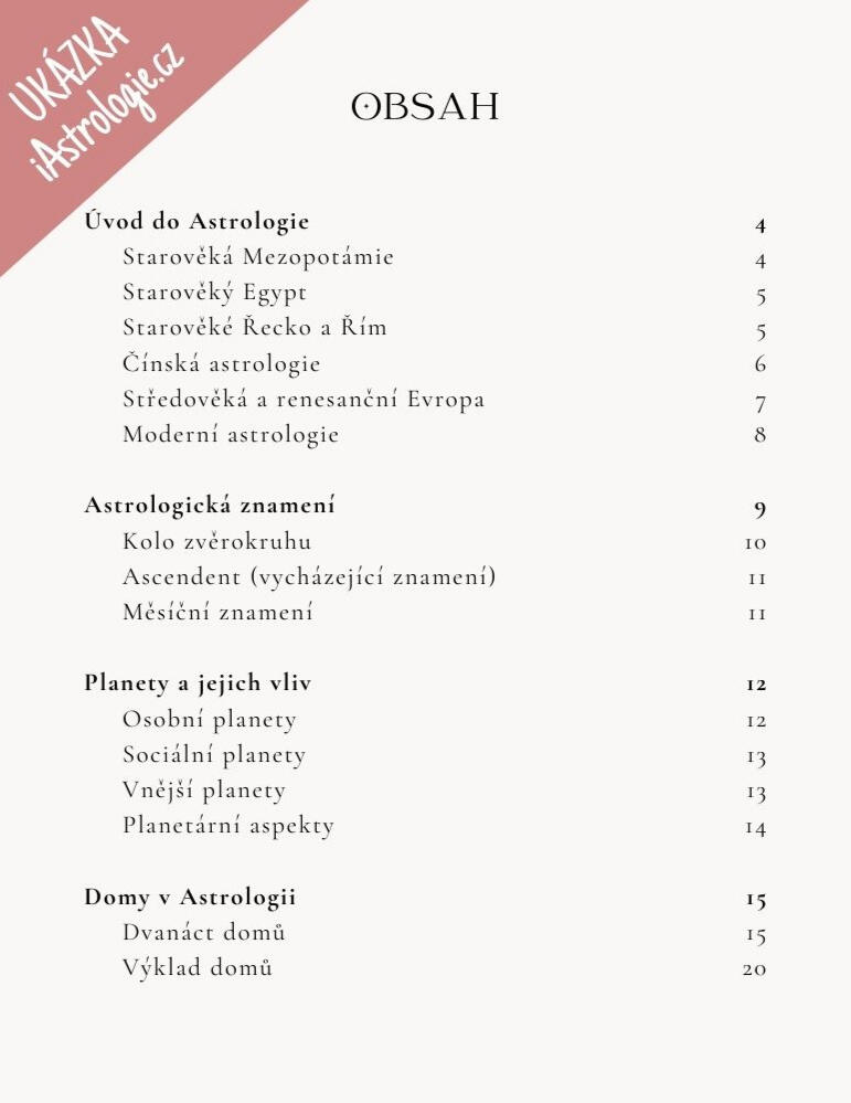 Kupní smlouva:Návrhem k uzavření kupní smlouvy je umístění nabízeného zboží prodávajícím na stránky, kupní smlouva vzniká odesláním objednávky kupujícím a přijetím objednávky prodávajícím. Toto přijetí prodávající neprodleně potvrdí kupujícímu informativním emailem na zadaný email. Smlouva je uzavírána v českém jazyce.Vztahy a případné spory, které vzniknou na základě smlouvy, budou řešeny výhradně podle platného práva České republiky. Tím nejsou dotčeny případy, kdy kupující bude mít bydliště v jiném státě než České republice a volba práva či prorogace soudu nebudou přípustné.Uzavřená smlouva je prodávajícím archivována po dobu nejméně pěti let od jejího uzavření, nejdéle však na dobu dle příslušných právních předpisů, za účelem jejího úspěšného splnění a není přístupná třetím nezúčastněným stranám.Kupující má možnost před vlastním odesláním objednávky ji zkontrolovat a případně opravit.Tyto VOP jsou k dispozici na portálu prodávajícího a je tak umožněna jejich archivace a reprodukce kupujícím.Náklady na použití komunikačních prostředků na dálku (telefon, internet atd.) pro uskutečnění objednávky jsou v běžné výši, závislé na tarifu telekomunikačních služeb, které kupující používá.II. CenyVšechny ceny jsou smluvní. Na webu iAstrologie.cz jsou vždy aktuální a platné ceny.III. ObjednáváníKupující dostane zboží za cenu platnou v době objednání. Tato cena bude uvedena v objednávce a ve zprávě potvrzující přijetí objednávky zboží.Objednávat je možno prostřednictvím elektronického formuláře na webu iAstrologie.cz.IV. Platební podmínkyProdávající akceptuje pouze platbu následujícími způsoby: bankovním převodem, online převodem nebo platební kartou.Způsob platby si kupující volí sám kliknutím na příslušnou variantu.Kupující souhlasí s tím, že fakturu může obdržet od prodávajícího v elektronické podobě.V. Dodací podmínkyElektronickou cestou: Neprodleně po připsání platby na účet prodávajího bude kupujícímu zaslán informační e-mail s obsahem, který si objednal.VI. Záruční podmínkyZáruční podmínky na zboží se řídí platnými a účinnými právními předpisy ČR. Jako záruční list slouží nákupní doklad. Podle § 53 odst.8 zák. č.40/1964 Sb. občanský zákoník nelze uplatnit možnost vrácení zboží do 14 dnů od uzavření kupní smlouvy.VII. Elektronický obsah a odstoupení od smlouvyProdávající poskytuje digitální obsah ve formě elektronických knih (e-booků) ve formátu PDF.Kupující tímto bere na vědomí, že digitální obsah není dodáván na hmotném nosiči.Kupující při dokončení objednávky výslovně souhlasí, že digitální obsah bude zpřístupněn před uplynutím lhůty pro odstoupení od smlouvy.Kupující dále bere na vědomí, že okamžikem zpřístupnění digitálního obsahu ztrácí právo odstoupit od smlouvy podle § 1837 písm. l) občanského zákoníku.Pokud digitální obsah obsahuje vady (např. poškozený soubor), má kupující právo na jejich reklamaci.VIII. Závěrečná ustanoveníTyto Všeobecné obchodní podmínky jsou platné a účinné od 1.11.2025. Prodávající si vyhrazuje právo změnit VOP bez předchozího upozornění.