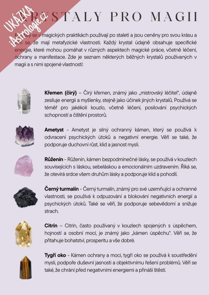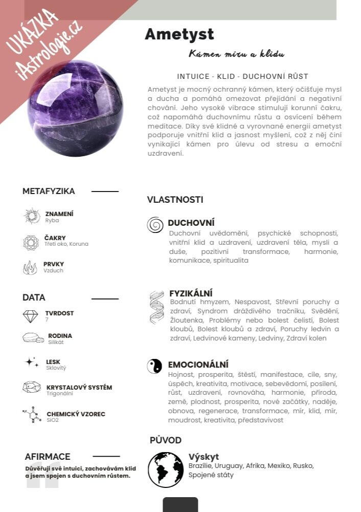 > Afirmaci ke každému kameni pro vědomou práci s jeho energií📘 Vše je zpracováno přehledně, jednotně a vizuálně, takže e-book poslouží jak začátečníkům, tak pokročilým milovníkům krystalů.Ideální průvodce pro ty, kteří chtějí porozumět kamenům do hloubky, pracovat s jejich energií a mít kompletní databázi krystalů na jednom místě.> Ihned u vás - doručení e-mailem